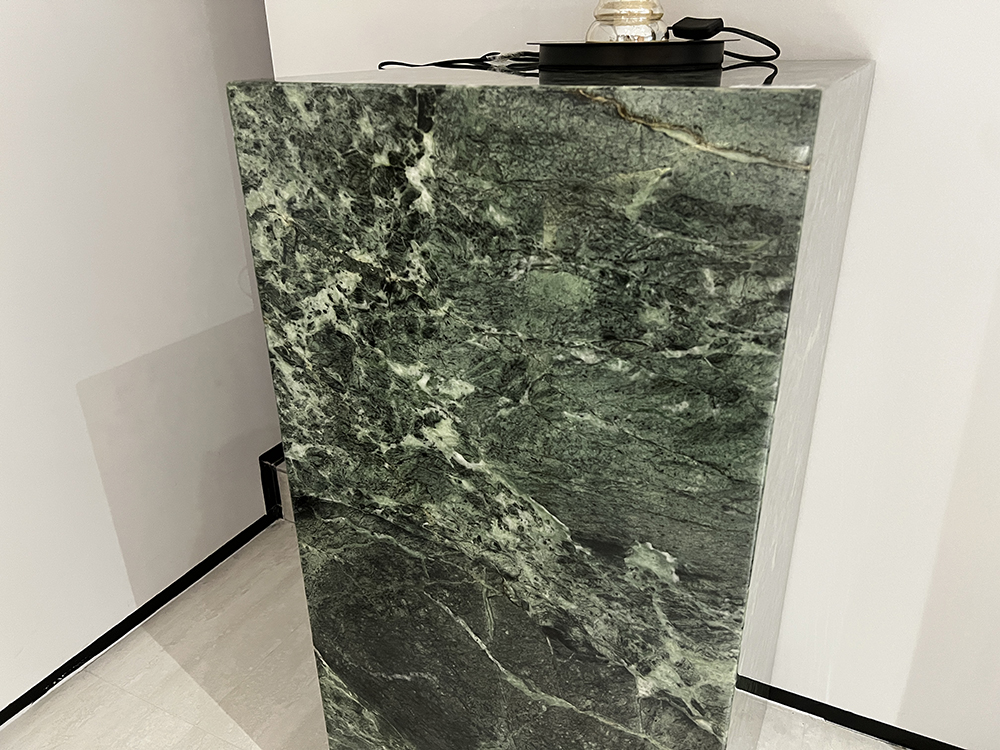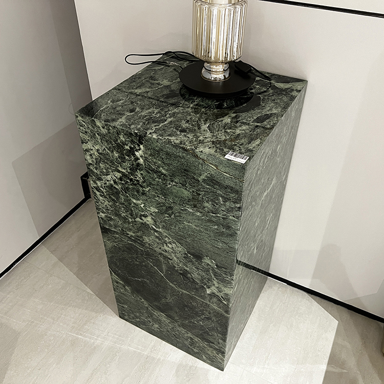 Auténtica italiana Mesa de centro de mármol verde Prada Fabricado con tecnología de empalme preciso y sin costuras, vetas naturales continuas a juego con el color, acabado pulido de alto brillo tipo espejo. Uso independiente o modular para salas de estar, tamaño totalmente personalizable. Acabado pulido de alto brillo tipo espejo que resalta el profundo tono verde bosque y las dinámicas vetas blancas de la icónica piedra de lujo, con excelente resistencia a los arañazos y al calor.
