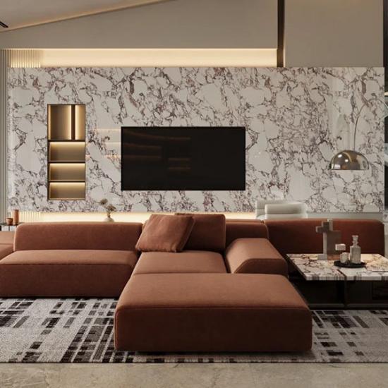 El mármol púrpura pertenece a un tipo de mármol de alta calidad en materiales de construcción blancos, su color y brillo humedecen el hielo blanco para ser como el jade por completo, el grano es exquisito, el grano es como el plato de dragón, hermoso y decoroso, pero la calidad de un material es más suave, pertenece a un tipo de material de piedra delicado.