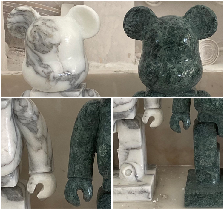Tamaño personalizado decoración del hogar DIY arte moderno dibujos animados piedra Natural sólida Bearbrick modelo escultura mármol oso ladrillo estatuas |