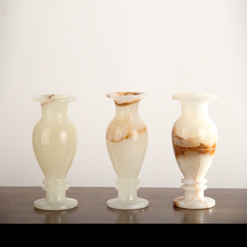 Tarro de vela de piedra de ónix blanco con tapa de ónix