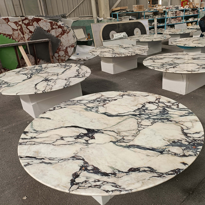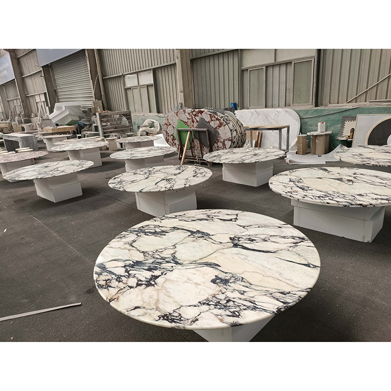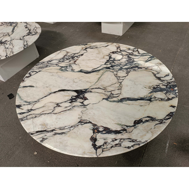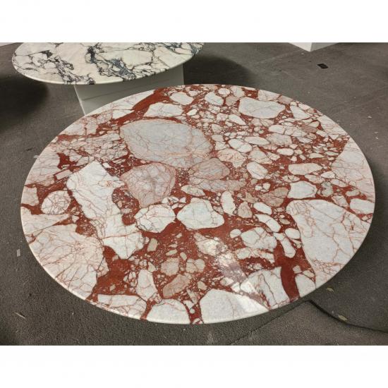 Tallado a partir del Mármol rojo Bulgari ,cada mesa de comedor redonda de mármol Presenta un patrón natural completamente único e irrepetible. Su superficie lisa y pulida como un espejo capta la luz, resaltando la profundidad de la estructura natural de la piedra, mientras que su suave silueta redondeada aporta una sensación de calma y sofisticación a cualquier espacio.